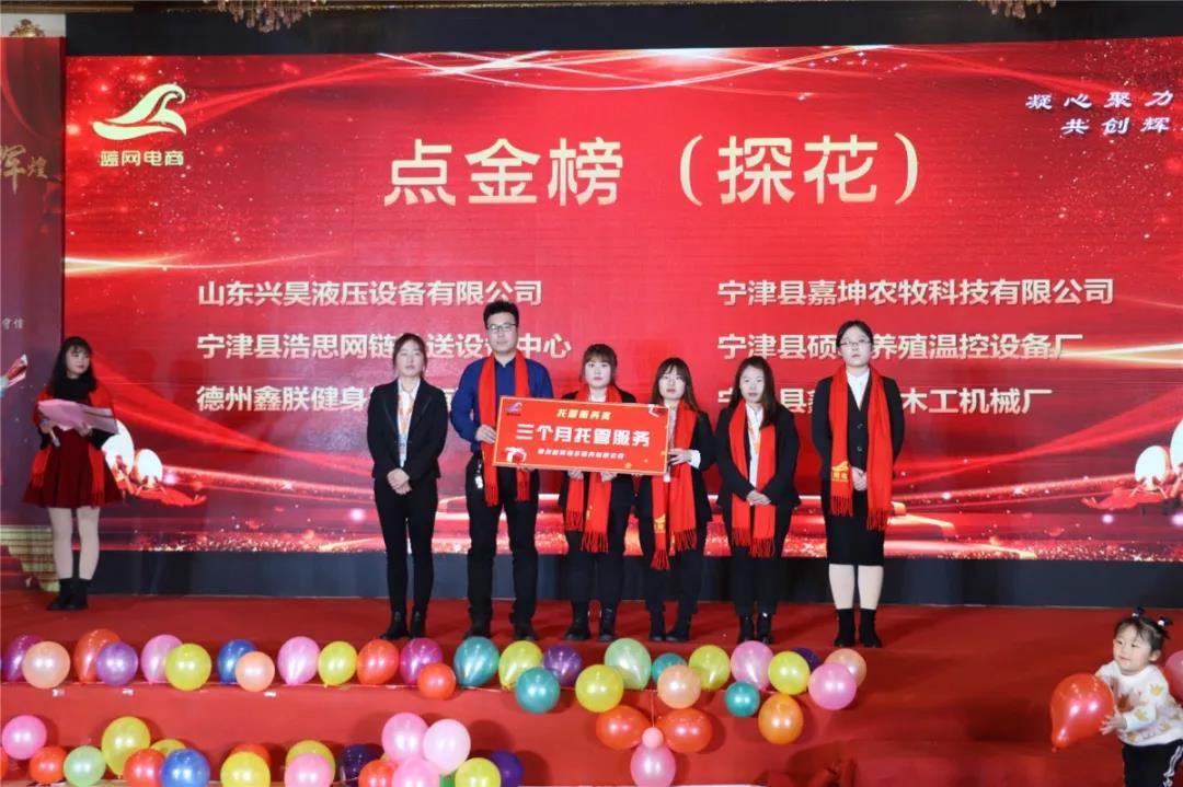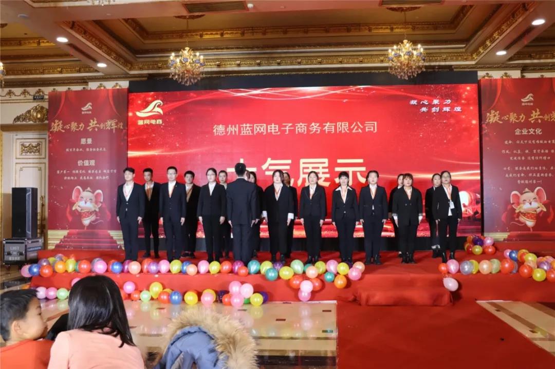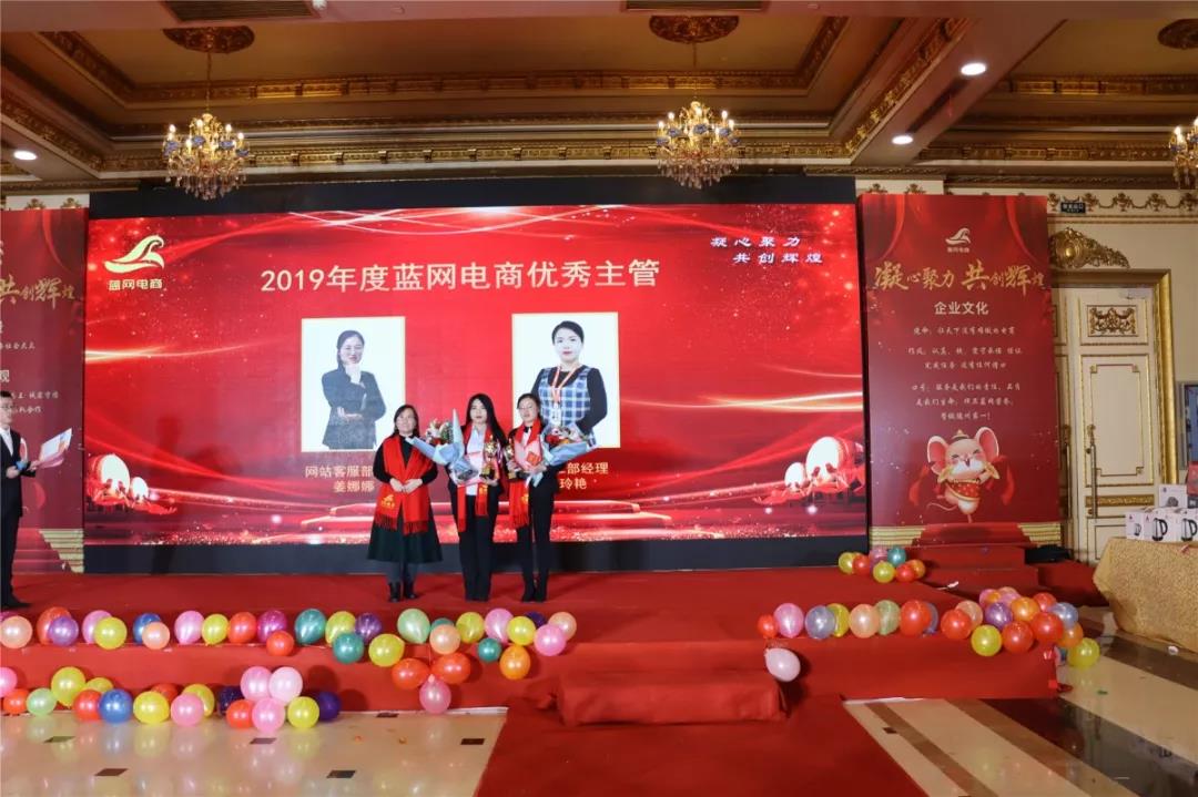 2020年1月18日,藍(lán)網(wǎng)電商在澳德樂大酒店以“凝心聚力 共創(chuàng)輝煌藍(lán)網(wǎng)電商2020年大型年會暨頒獎盛典”為年會主題隆重召開,來自各行各業(yè)的優(yōu)秀商家,合作伙伴以及藍(lán)網(wǎng)電商全體家人近300人參加本次宴會。
