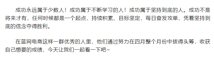【藍網(wǎng)電商】四月榮譽榜—礪劍出鞘,登上巔峰!