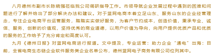 《德州日報》藍網(wǎng)電商專業(yè)運營:助力企業(yè)“通電”出海